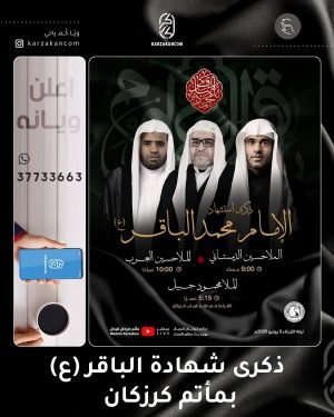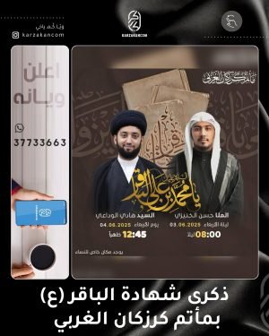 ✲ ﻣأﭠم شـﺑاب ﻛرزﻛٱن ،، ┈╾۞ *ذكـرىٰ استشھاد الإمـام* ┈╾۞ *محمد بن علي الباقر ’ع‘* ⌯ ليلة الأربعاء 3 – 6 – 2025 م ۞ موكب أبناء الطف (للأشبال) ≣ الرادود حسين عاشور ≣ 08:15 مساءً ۞ الخطابة الحسينية ≣ الملا حسين الدمستاني ≣ مأتم كرزكان للرجال ≣ 09:00 مساءً …