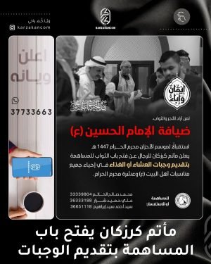 لمن أراد الأجر والثواب .. *`•۞( ضيافة الإمام الحسين “ع” )۞•`* استقبالًا لموسم الأحزان محرم الحرام ١٤٤٧ھ يعلن مأتم كرزكان للرجال عن فتح باب الثواب للمساهمة *بتقديم وجبات العشاء والغداء* في إحياء جميع مناسبات أهل البيت “ع” وعشرة محرم الحرام ❝ ⅏⅏⅏⅏⅏⅏⅏⅏⅏⅏ ❖ للمساهمة والإستفسار: ☏ محــمد صــالـح الخـاتـم 33339804 …
