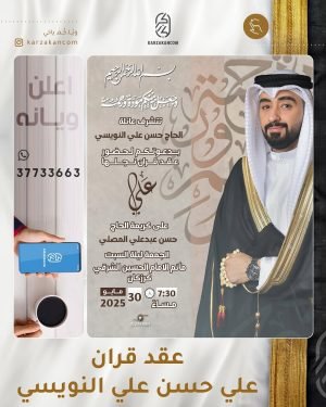 أكمل القراءة »🌺يتشرف الحاج حسن علي النويسي بدعوتكم حفل عقد قران نجله *«علي»*، بمأتم الإمام الحسين (ع) الشرقي.