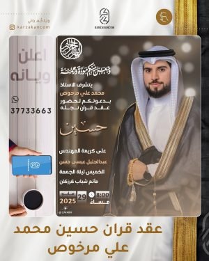أكمل القراءة »🌺يتشرف الأستاذ محمد علي مرخوص بدعوتكم لحفل عقد قران نجله *«حسين»*، بمأتم شباب كرزكان.