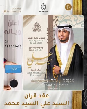 أكمل القراءة »🌺يتشرف السيد محمد السيد علي السيد عبدالله بدعوتكم حفل عقد قران نجله *«السيد علي»*، بمأتم الإمام الحسين (ع) الشرقي.