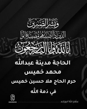 الحاجة مدينة عبدالله محمد خميس حرم الحاج ملاحسين علي يوسف خميس ووالدة كل من علي و عباس أوقات مجالس التعزية 🔺 *تعازي الرجال* 📍مأتم كرزكان للرجال بدءاً من عصر الاثنين ▪️صباحا: 8:30 – 11:00 *قراءة القرآن فقط* ▪️عصرًا: 4:00 – 6:00 *الخطيب الساعة 5:00* ▪️ليلاً: 7:00 – 9:30 *الخطيب الساعة …