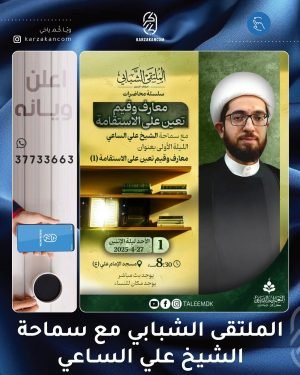 📜 *الموضوع: معارف وقيم تعين على الاستقامة* 🎙️ *المحاضر:* *سماحة الشّيخ علي السّاعي* 📆 *الليالي:* *اللّيلة الأولى :* الأحد (ليلة الإثنين) 27/4/2025 *اللّيلة الثّانية :* الأحد (ليلة الإثنين) 4/5/2025 *اللّيلة الثّالثة :* الأحد (ليلة الإثنين) 11/5/2025 *اللّيلة الرّابعة:* الأحد (ليلة الإثنين) 18/5/2025 ⏰ *الوقت:* *٨:٣٠ مساءً* 📍 *المكان:* *مسجد الإمام …
