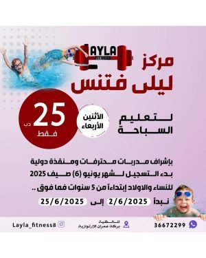 • بدء التسجيل لدورة شهر يوليو (6) • العمر: من 5 سنوات إلى فوق 50 سنة (للبنات والأولاد والنساء) – أيام الدورة: يومي الإثنين والأربعاء – من 2/6/2025 إلى 25/6/2025 – السعر: 25 دينارًا – المنطقة: مدينة حمد – شارع المالكية للتسجيل: @layla_fitness8 لتواصل: 36672299 @layla_fitness8 المصدر: إنستغرام