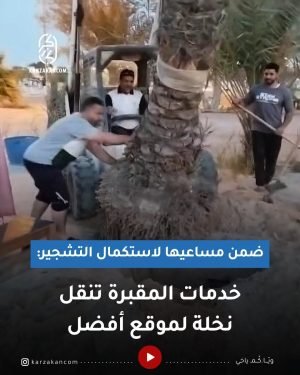 عمدت لجنة الخدمات بمقبرة كرزكان إلى نقل نخلة من زاوية مهملة في المقبرة إلى مكان أفضل بإحدى شوارعها مما يساهم في إضفاء جمالية أكبر للتشجير فيها. المصدر: إنستغرام