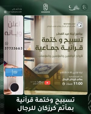 ⌥ بعد القراءة مباشرة ⌥ 11:00 مساءً ❃ بمأتم كرزكان للرجال تحت رعاية إدارة ،، مأتم كرزكان للرجال مأتم شــباب كرزكان ↺ ˟˟ `برنامج ليلة عيد الفطر` *تسبيح وختمة قرآنية جماعية* لأرواح الواقفين والمؤمنين والمؤمنات ⦷ مـبـاشـــر | Live . على قناة مأتم كرزكان ┈━ •۞ 𝙼𝙰𝚃𝙰𝙼 𝙺𝙰𝚁𝚉𝙰𝙺𝙰𝙽 ۞• ━┈ …