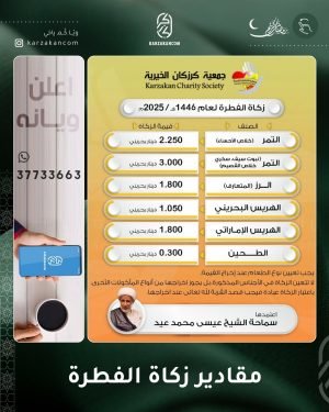 أكمل القراءة »نشرت جمعية كرزكان الخيرية جدول مقادير زكاة الفطرة لهذا العام 1446هـ / 2025م والتي اعتمدها سماحة الشيخ عيسى عيد