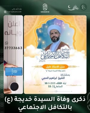 في ذكرى السيدة الجليلة أم المؤمنين خديجة الكبرى عليها السلام احتضن منزل الأستاذ خليل برنامج التكافل الاجتماعي في الليلة العاشرة من الشهر الكريم الموافق 10 مارس 2025، حيث قرأ الخطيب الحسيني الشيخ إبراه