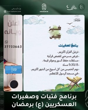*يسر مسجد العسكريين/اللوزي أن يعلن عن برامجه للشهر الكريم كالتالي :* ✨ *البرنامج القرآني | بساط الرحمة + المعرفة القرآنية* 🔖 ترتيل القرآن الكريم 🔖آية وعبرة 🔖سحوبات وجوائز للحضور ⏰ الساعة ١:٠٠ ظهرًا. 🗓️ يوم السبت من كل أسبوع 🕹️مسجد العسكريين/اللوزي. ✨ *برامج الصغيرات* 🔖 *خير جليس* 🔖ترتيل القرآن الكريم …