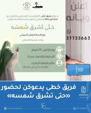 يعلن *فريق خطى* التابع لمسجد العسكريين بالاشتراك مع مركز ابو رمانة الاسلامي فعاليته التاسعة.. (*حتى تُشْرِقُ شَمْسُه*) ♦️اليوم: يوم الاثنين، ليلة الثلاثاء ♦️التاريخ: 24-2-2025 ♦️الوقت: 7:30 مساءً ♦️الفئة: 15 فما فوق ♦️المكان: مأتم فاطمة الزهراء (ع) (بنت حسن)-دمستان ♦️تقديم: أ. إيمان الحبيشي ♦️للاستفسار: 33790744 💕نتمنى حضوركن💕 للتسجيل :عبر الرابط في …