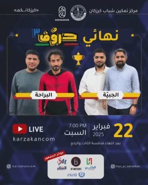 ابتداءً من الساعة السابعة تماماً 7:00م. تكريم الفرق الأربعة بجوائز نقدية مقدمة من مركز تمكين شباب كرزكان. @mys_yc_karzakan جوائز للجمهور الحاضر ومتابعي اليوتيوب، برعاية: @b7watches .. @alhellibh .. @alsater_market .. @salamgas .. . . @karzakancom المصدر: إنستغرام