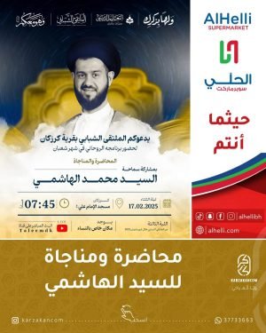 نقف وقفة تأملية، ونبحر في ألفاظ المناجاة الشعبانية، لنستخرج منها الدرر واللآلئ النفسية، ولنعِيش لذة الذكر والقرب مع الله. ● يدعوكم الملتقى الشبابي بقرية كرزكان لحضور برنامجه الروحي لشهر شعبان ° محاضرة ومناجاة ° 📅 كل أسبوع من شهر شعبان ✤اللقاء الثالث✤ ◇ بمشاركة: إسماحة السيد محمد الهاشمي 📅 يوم …