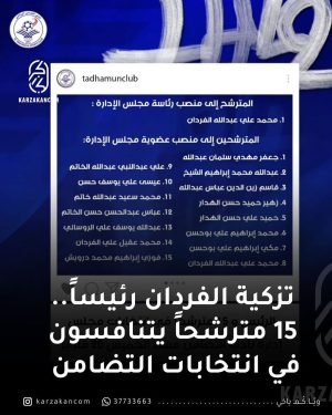 وترشح لمنصب رئيس مجلس الإدارة الرئيس الحالي محمد علي عبدالله الفردان، والذي ستتم تزكيته للرئاسة باعتباره المترشح الوحيد، بينما يتنافس على عضوية مجلس الإدارة 15 مترشحًا بينهم وجوه شابة جديدة تترشح للمرة الأولى. والمترشحون لعضوية الإدارة هم: 1. جعفر مهدي سلمان عبدالله 2. عبدالله محمد إبراهيم الشيخ 3. قاسم زين …
