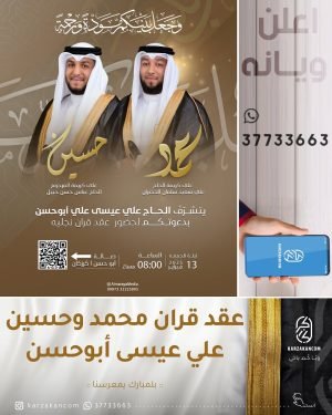 أكمل القراءة »🌺يتشرف الحاج علي عيسى علي أبوحسن بدعوتكم لحضور عقد قران نجليه *«محمد»* و *«حسين»*، بصالة أبو حسن.