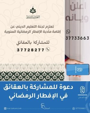تدعوكم لجنة التعليم الديني الى مأدبة الإفطار الرمضانية السنوية للمشاركة بالعقائق التواصل على 37728277 ۩ التعليم الديني- كرزكان @taleemdk المصدر: إنستغرام