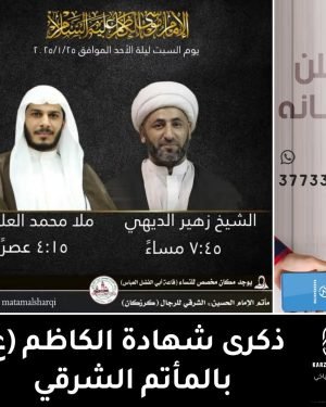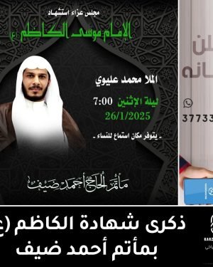 أكمل القراءة »أوقات مجالس القراءة بذكرى استشهاد الإمام الكاظم (ع) بمأتم الحاج أحمد ضيف