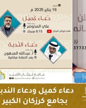 …•|【 دعاء كميل&دعاء الندبة 】|•… 📖 *دعاء كميل* 🗓 *16/01/2025* ⏱6:15 مساءاً 🗣 القارئ علي المخوضر 📺 *الـبـث المباشر على قناة* *مـأتـم كـرزكـان للرجـال* @matamkarzakan 📖 *دعاء الندبة* 🗓 *17/01/2025* ⏱ بعد صلاة الصبح مباشرة 🗣 القارئ أ. عبدالله المدهون @jame3karzakan المصدر: إنستغرام