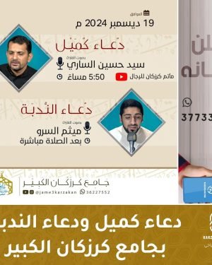 …•|【 دعاء كميل&دعاء الندبة 】|•… 📖 *دعاء كميل* 🗓 *19/12/2024* ⏱5:50 مساءاً 🗣 القارئ سيد حسين الساري 📺 *الـبـث المباشر على قناة* *مـأتـم كـرزكـان للرجـال* @matamkarzakan 📖 *دعاء الندبة* 🗓 *20/12/2024* ⏱ بعد صلاة الصبح مباشرة 🗣 القارئ ميثم السرو @jame3karzakan المصدر: إنستغرام