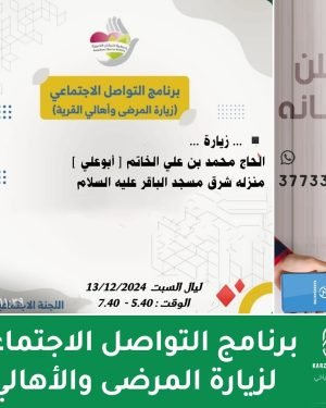 أكمل القراءة »برنامج التواصل الاجتماعي لهذا الأسبوع لزيارة المرضى وأهالي القرية.