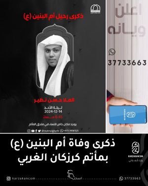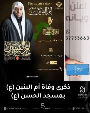 احياءً لمناسبات أهل البيت عليهم السلام ولمطلق اعمال الخير يقيم 🕌 مسجد الإمام الحسن (ع) | حي الحسن | كرزكان ▪️إحياء ذكرى وفاة أم البنين عليها السلام الخطيب : الشيخ قاسم زين الدين الرادود : عبدالهادي الدرازي اليوم : السبت التاريخ : 14.12.2024 الوقت : 12:00 ظهراً ▪️يهدى ثواب هذا …