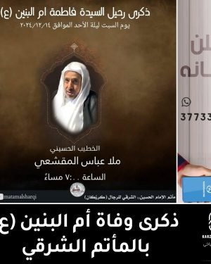 أكمل القراءة »ذكرى وفاة أم البنين (ع) بمأتم الإمام الحسين (ع) الشرقي