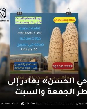 أكمل القراءة »ينظم “أهالي حي الحسن (ع)” رحلة إلى قطر خلال يومي الجمعة والسبت الموافقين 6 و7 ديسمبر 2024.