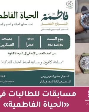 أكمل القراءة »تنظم فتيات شموس الرسالة معرضًا تحت عنوان 🪶 *الحياة الفاطمية تحت محاور (العبادية-العلمية-الجهادية)*