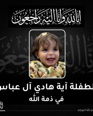 الطفلة آية هادي فاضل عباس آل عباس. اليوم الاثنين 25-11-2024 التشييع غدًا الثلاثاء الساعة 8:30 صباحًا تجهيز القبر الساعة 7:00 صباحًا إنا لله وإنا اليه راجعون الفاتحة المصدر: إنستغرام