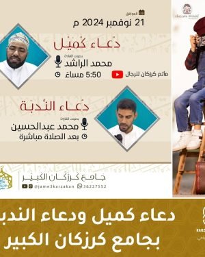 …•|【 دعاء كميل&دعاء الندبة 】|•… 📖 *دعاء كميل* 🗓 *21/11/2024* ⏱5:50 مساءاً 🗣 القارئ محمد الراشد 📺 *الـبـث المباشر على قناة* *مـأتـم كـرزكـان للرجـال* @matamkarzakan 📖 *دعاء الندبة* 🗓 *22/11/2024* ⏱ بعد صلاة الصبح مباشرة 🗣 القارئ محمد عبدالحسين @jame3karzakan ————- الإعلان ♥️ وثق أجمل اللحظات تواصل معنا لحجز جلسة …