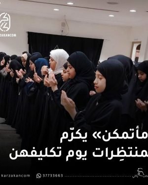 كرّم مأتم كرزكان للنساء «مأتمكن» الصغيرات المنتظِرات بعد وصولهن سن التكليف الشرعي (9 سنوات هجرية)، وتم تسليم الشهادات لمن وصلت سن التكليف فعلياً وسيتم استكمال تسليمها للباقي بحسب يوم تكليف كل منهن.