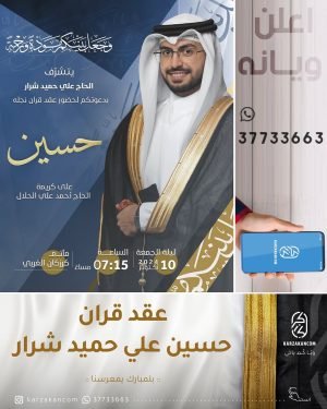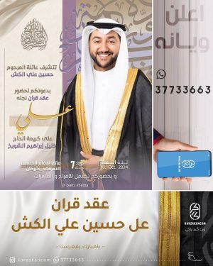 أكمل القراءة »🌺تتشرف عائلة المرحوم حسين علي الكش بدعوتكم لحضور عقد قران نجلهم *«علي»*، بمأتم الإمام الحسين (ع) الشرقي.