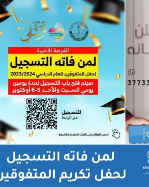 أكمل القراءة »لمن فاته التسجيل لحفل تكريم المتفوقين، تم فتح باب التسجيل لمدة يومين (يومي السبت والأحد 5-6 أكتوبر)