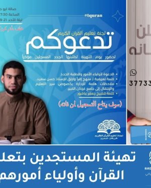 تدعوا لجنة تعليم القرآن أولياء الامور وطلابهم الاعزاء الجدد لحضور يوم التهيئة كما الآتي. ليلة الاحد 21 سبتمبر 2024 الساعة 7:30م @tquran المصدر: إنستغرام