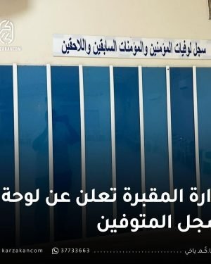 أكمل القراءة »أعلنت إدارة مقبرة كرزكان عن بدء استقبالها لصور ومعلومات المتوفين لنشرها في لوحة خاصة بسجل المتوفين داخل صالة المصلى.