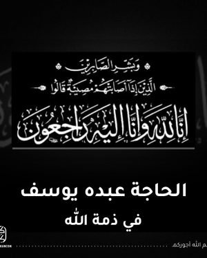 الحاجة عبده يوسف سلمان، أرملة المرحوم الحاج حسن بن عبدالله بن علي حسن، ووالدة كل من علي وعبدالله. اليوم الاثنين 23-9-2024 التشييع الساعة 4:00 عصرًا. 🌑 برنامج مجالس العزاء 🕗صباحاً: 8:30 إلى 11:00 🔹تلاوة القرآن وتقديم التعازي 🕒عصراً: 3:30 إلى 5:30 🔹تلاوة القرآن وتقديم التعازي الخطيب: الساعة 4:30 🕡ليلاً: 7:00 …