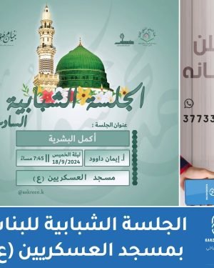 يعلن مسجد العسكريين *فريق خطى* فعاليته الخامسة.. (*أكمل البشرية*) ♦️اليوم: يوم الاربعاء، ليلة الخميس ♦️التاريخ: 18-9-2024 ♦️الوقت: 7:45 مساءً ♦️الفئة: 15 فما فوق ♦️المكان: مسجد العسكريين ♦️تقديم: الأستاذة ايمان داوود ♦️للاستفسار:33790744 💕نتمنى حضوركن💕 للتسجيل :عبر الرابط https://forms.gle/7zv9USBghFsb3FEL7 @askreen.k المصدر: إنستغرام
