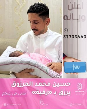 رزق ابن القرية حسين محمد علي المرزوق وحرمه المصون بمولودهتما وأسمياها “رقية” . نبارك لوالديها وأهلها قدومها الميمون وندعو الله أن يجعلها مولوداً مباركاً بارةً بوالديها وذخراً لهما المصدر: إنستغرام