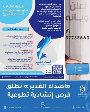 *مميزة مع “أصداء الغدير”* ⁉️ هل لديك شغف بالإنشاد وتطمح في التطوع والمساهمة في إيصال الرسائل الإسلامية الهادفة *وخدمة أهل البيت (ع)* عبر الإنشاد؟ ✅ فرقة أصداء الغدير للإنشاد الإسلامي تبحث عن متطوعين مبدعين للانضمام إليها *لخدمة محمد وآل محمد* ✨ *نحن بحاجة إلى:* ▫️ *منشد:* إن كنت تمتلك صوتًا …