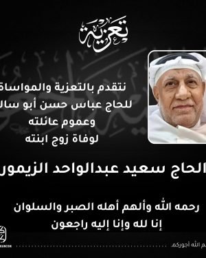 الحاج سعيد عبدالواحد الزيمور (أبو محمود) من جدحفص الخميس 12-9-2024 *التشييع*: عصر يوم الجمعة – الساعة: 4:30 عصراً من مقبرة اللوزة في جدحفص. *مجالس التعزية*: *للرجال*: مسجد المُشرف *للنساء*: مأتم سعدة تغمد الله الفقيد بواسع رحمته وألهم أهله وذويه الصبر والسلوان رحم الله من يهدي لروحه ولأرواح المؤمنين والمؤمنات ثواب …