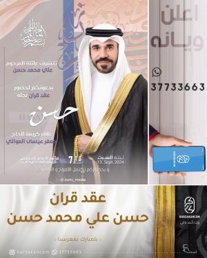 أكمل القراءة »🌺تتشرف عائلة المرحوم الحاج علي محمد حسن بدعوتكم لحضور عقد قران نجلهم *«حسن»*، بمأتم الإمام الحسين (ع) الشرقي.