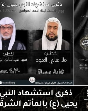 أكمل القراءة »القراءة بذكرى شهادة النبي يحيى (ع) بمأتم الإمام الحسين (ع) الشرقي