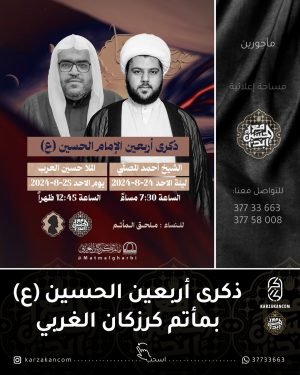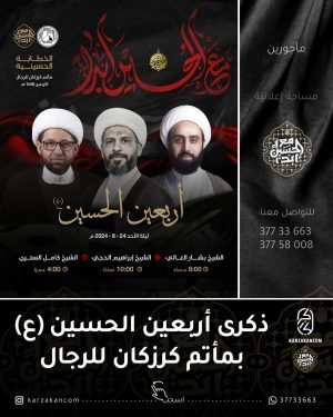 ✲ ﻣأﭠم ﻛرزﻛٱن ﻟﻟرﺟٱل ،، ┈╾۞ *ذكـرىٰ أربـعـــــــين* ┈╾۞ *الإمام الحسين ’ع‘* ⌯ السبت 24 – 8 – 2024 م ۞ الخطابة الحسينية ≣ الشيخ بشار العالي ≣ 09:00 مساءً ۞ الموكب العزائي ≣ الرادود أحمد السماهيجي ≣ 10:00 مساءً ┈━ •۞[ اَﻟسَّـﻟامُـ ﻋَﻟَﯾْﮑَ ﯾَا أَﺑَا ﻋَﺑْدِ ٱﻟﻟّٰھ ]۞• ━┈ …
