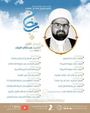 أكمل القراءة »‘ برنامج مأتم كرزكان للرجال للشهر الفضيل 2022 م – 1443 هـ ◑ النصف الأول: – ا…