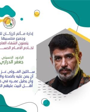 ‘ ۩ مأتم كرزكان .. إدارة مأتم كرزكان للرجال وجميع منتسبيها يتمنون الشفاء العاجل لخادم الإمام الحسين “ع” ┙ الرادود الحسيني جعفر الدرازي سائلين المولى عز وجل أن يمنَّ عليه بالصحة والعافية وأن يطيلَ في عمره في خدمة أهل البيت عليهم السلام. ━─┄─━─┄─━─┄─━─┄─━ *✾ мαταм ĸαяzαĸαи ✾ * المصدر
