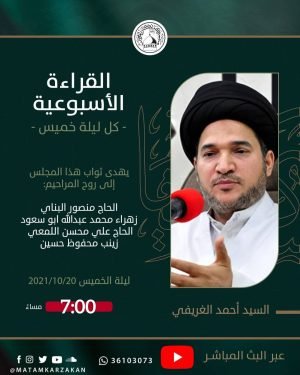 أكمل القراءة »‘ ۩ مأتم كرزكان .. « القراءة الأسبوعية» *الخطيب* : السيد أحمد الغريفي *الوق…