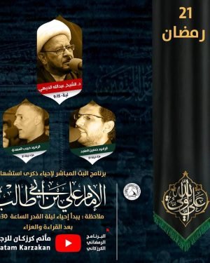 ۩ ﻣأﭠم ﻛرزﻛٱن .. . . برنامج البث المباشر لإحياء ذكرى استشهاد الإمام علي بن أ…