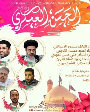 أكمل القراءة »– . . ۩ ﻣأﭠم ﻛرزﻛٱن .. . . برنامج الاحتفال بمناسبة ذكرى مولد الإمام العسكري (ع) …
