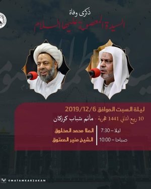 – . . ۩ ﻣأﭠم ﻛرزﻛٱن .. . . 🏴 بَرنامجْ مَأتم كَرزكّان للرجال ذكرى وفاة السيدة المعصومة (ع) ١٤٤١ هـ | 2019 م . . #Bahrain #Matam #Karzakkan #البحرين #مأتم_كرزكان المصدر