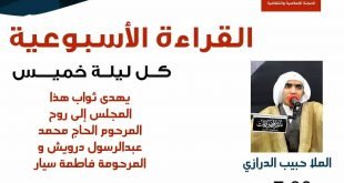 – . . . ۩ مأتم كرزكان … . . « القرآءة الأسبوعية» . . *الخطيب* : الملا حبيب الدرازي *الوقـــت* : 7:00 م *المكـــان* : مأتم شباب كرزكان *اللــــيلة* : ليلة الخميس *الموافق* : 5/12/2018 . . 🔹️يهدى ثواب هذا المجلس إلى روح المرحوم الحاج محمد عبدالرسول درويش و …