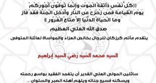 – . . . بسم ٱلله الرَّحْمٰنِ الرَّحِيـمِ {كُلُّ نَفْسٍ ذَآئِقَةُ الْمَوْتِ وَإِنَّمَا تُوَفَّوْنَ أُجُورَكُمْ يَوْمَ الْقِيَامَةِ فَمَن زُحْزِحَ عَنِ النَّارِ وَأُدْخِلَ الْجَنَّةَ فَقَدْ فَازَ وَما الْحَيَاةُ الدُّنْيَا إِلاَّ مَتَاعُ الْغُرُورِ } صدق الله العلي العظيم . . يتقدم مأتم كرزكان للرجال بخالص العزاء والمواساة لعائلة المتوفى . . “السيد محمد السيد رضي …